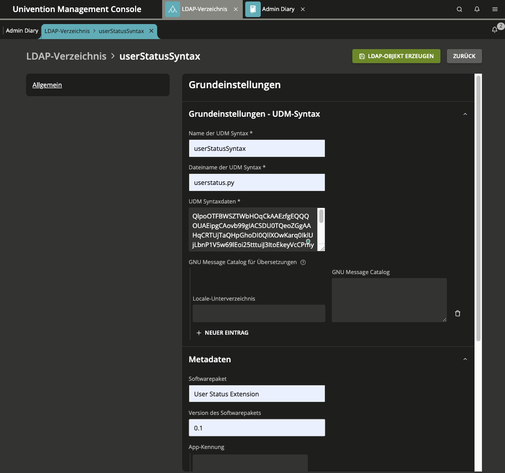 Object created: cn=userstatus,cn=udm_syntax,cn=univention,dc=mydomain,dc=tld