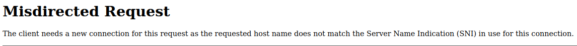The client needs a new connection for this request as the requested host name does not match the Server Name Indication (SNI) in use for this connection.