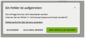 Interner Server-Fehler in "schoolusers/password/reset (student)".