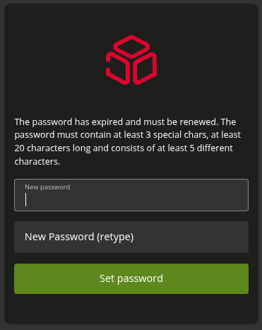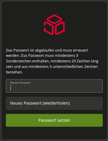 ucr set umc/login/password-complexity-message/de='Das Passwort muss mindestens 3 Sonderzeichen enthalten, mindestens 20 Zeichen lang sein und aus mindestens 5 unterschiedlichen Zeichen bestehen.' -