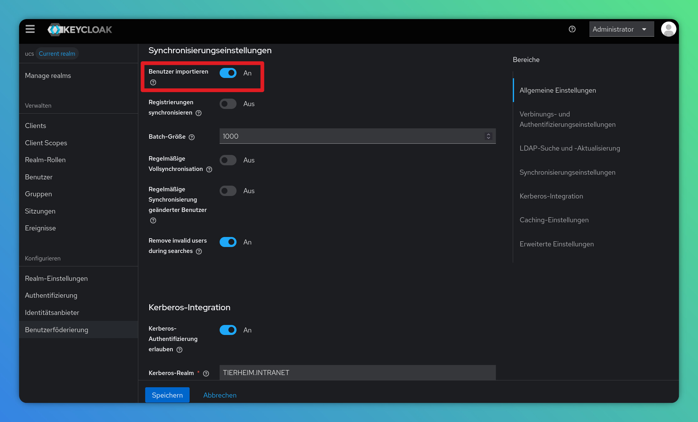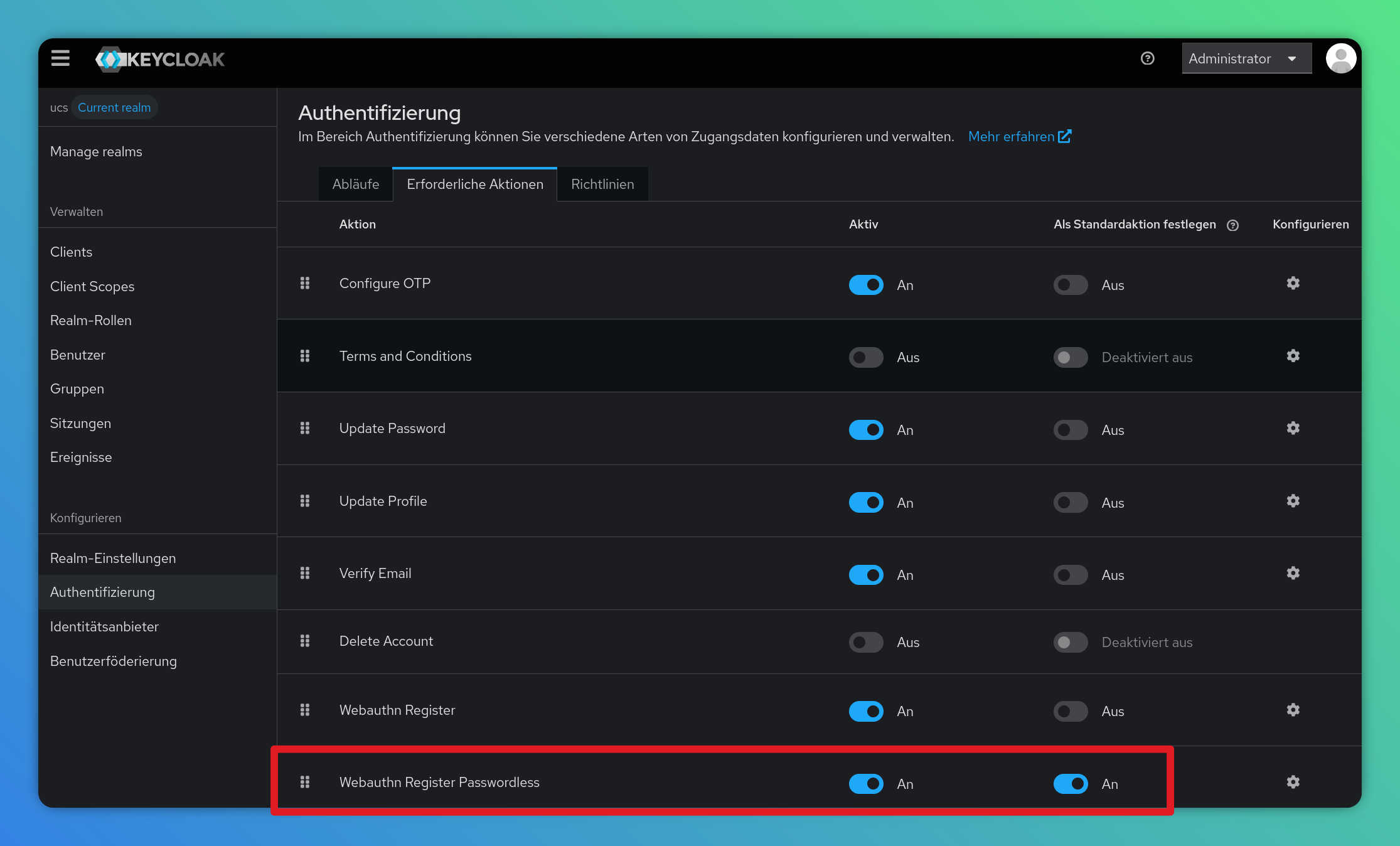 Yes, it is possible to use WebAuthn for passwordless authentication in UCS with Keycloak >=26.4. However, please note that this currently requires the “Import Users” setting to be enabled within your LDAP federation settings, which changes the ID of the users.