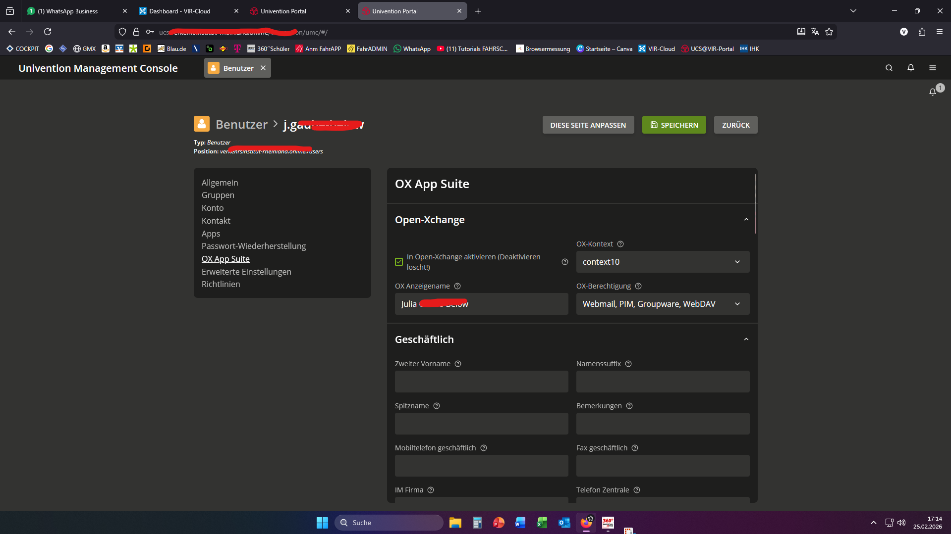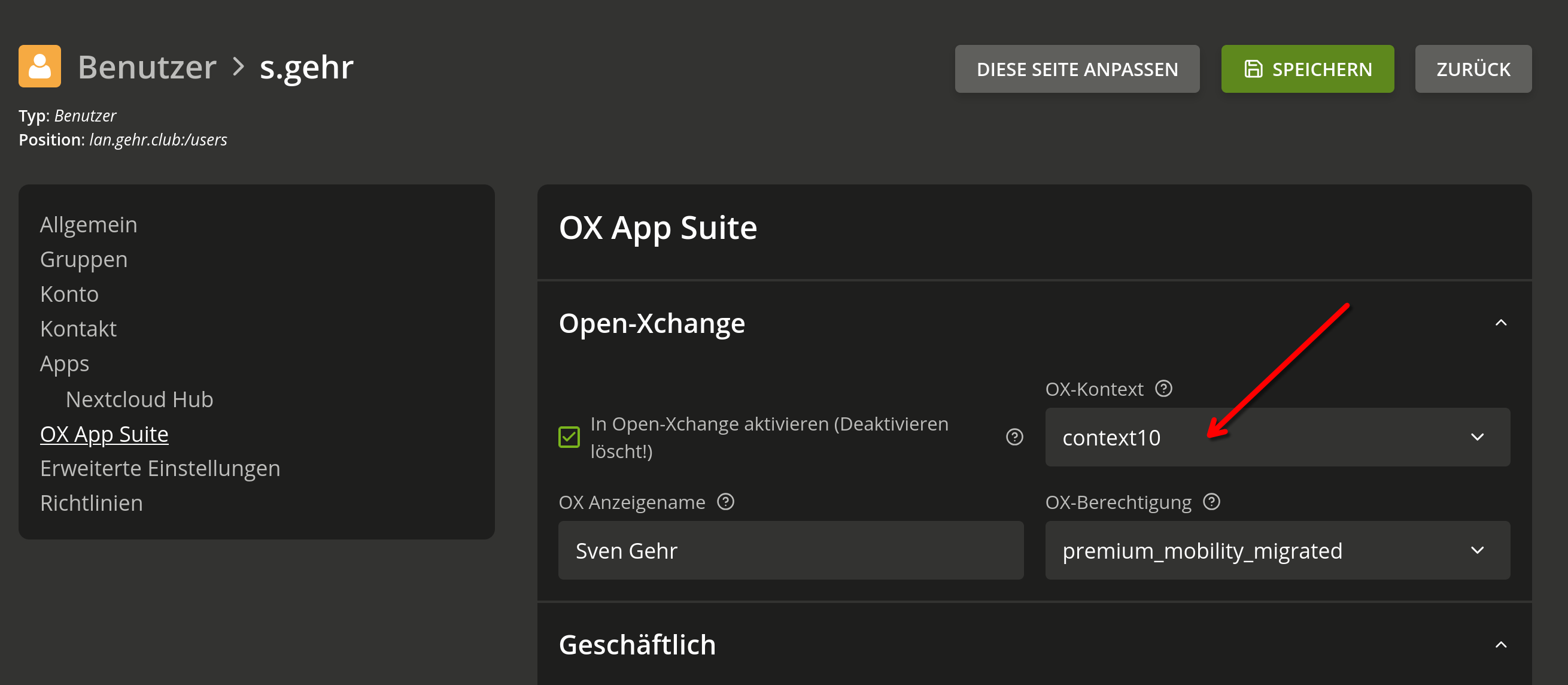 In den entsprechenden Profilen der User die Zugriff erhalten sollen, sind alle erforderlichen Einstellungen zwecks Open-Xchange aktiviert.